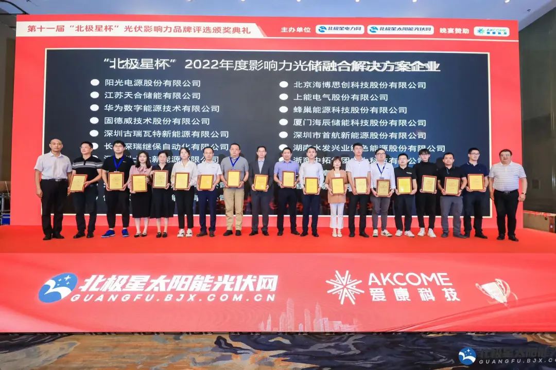9月23日,“携光而行·领跑零碳”2022年光伏新时代论坛暨第十一届‘北极星杯’光伏影响力品牌评选颁奖典礼在江苏南京完美落幕。来自光伏行业权威专家、光伏产业链各环节优秀企业代表等百余位来宾欢聚一堂,共襄盛举。多宝电竞深瑞继保自动化有限公司(以下简称“多宝电竞深瑞”)受邀出席,再度荣获“影响力光储融合解决方案企业”、“影响力特色光伏应用项目案例企业” 两大奖项。